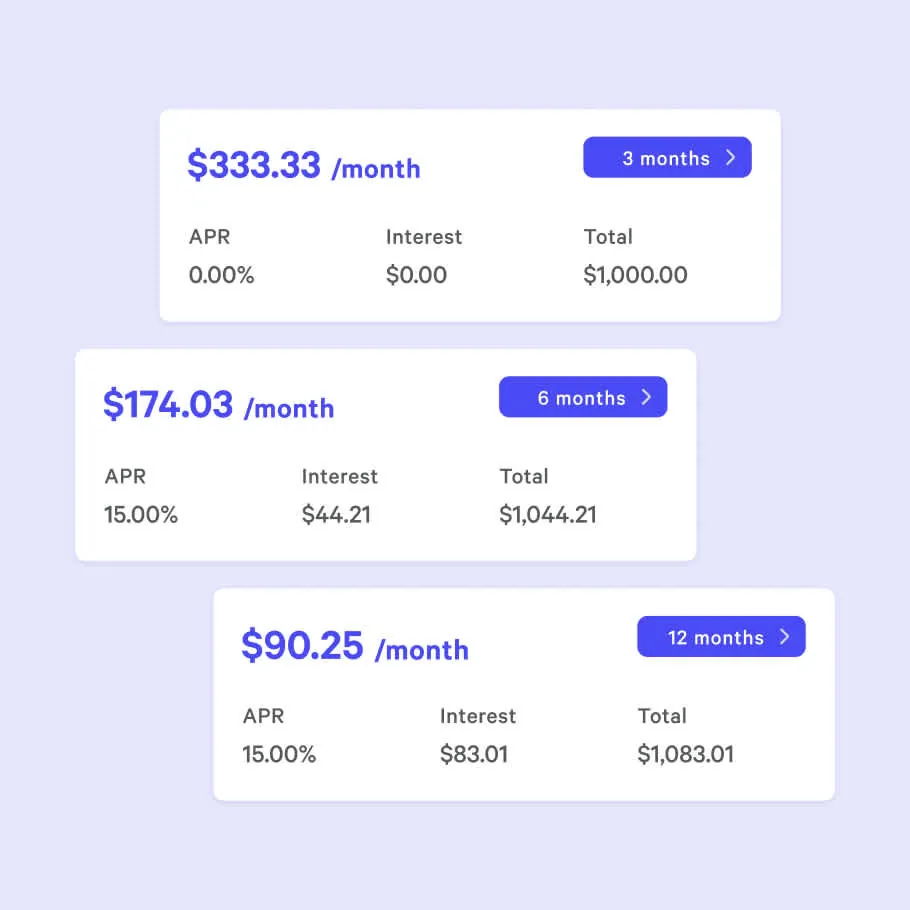 Get 0% APR financing for 3, 6, and 12 months on orders under $2,000 with Affirm