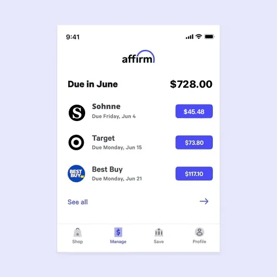 Enjoy peace of mind knowing Affirm won’t charge late fees or any penalties if you miss a payment by mistake. There are no late fees or hidden fees, ever.