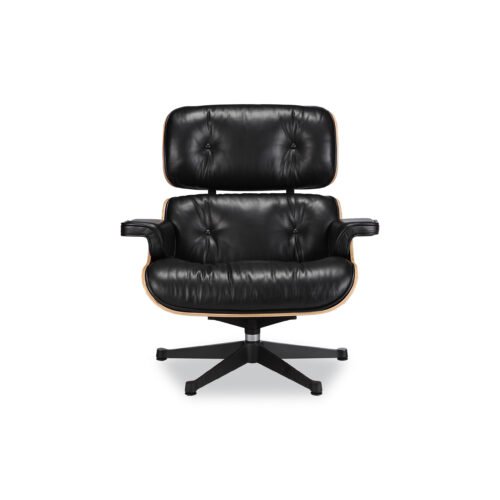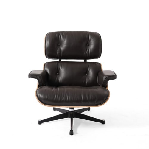 The iconic design was designed in 1956 and has become widely recognized as a symbol of luxury and exclusivity. Its one of the most comfortable chairs ever created. This authentic reproduction is manufactured to the highest standards in the industry using the finest leathers and wood veneers. The cushions and armrests are fully upholstered in genuine leather on all sides, and cushions are constructed of durable PU injection foam wrapped in Dacron silk to retain their shape over time.