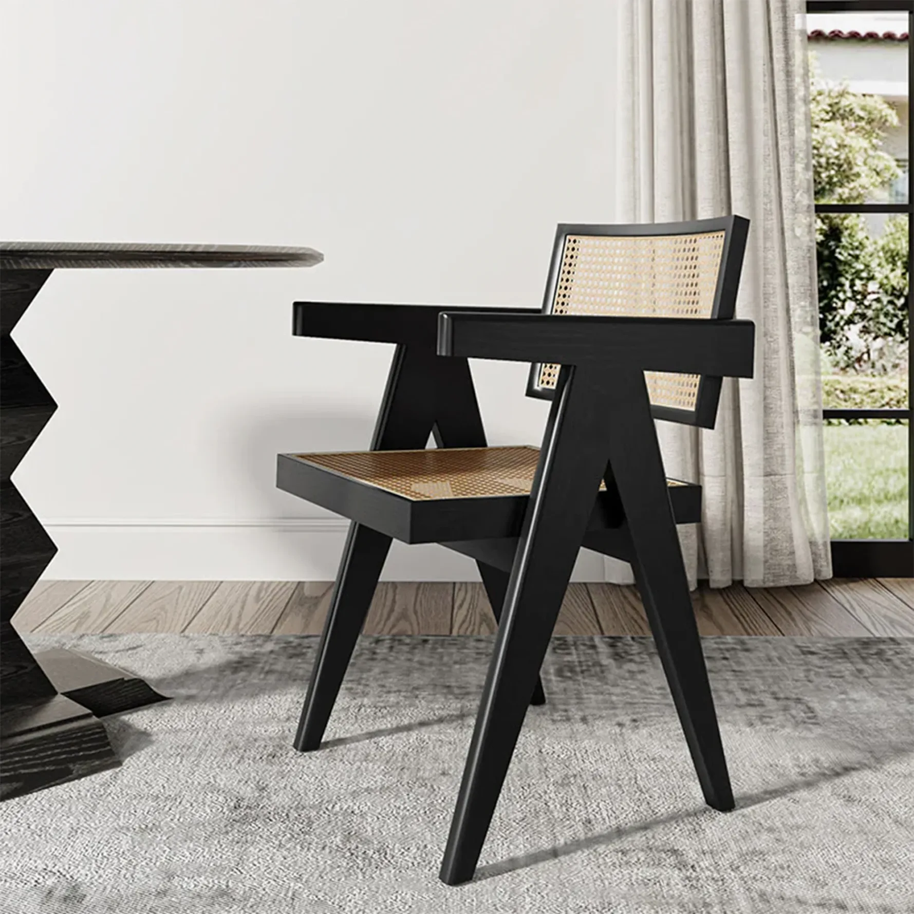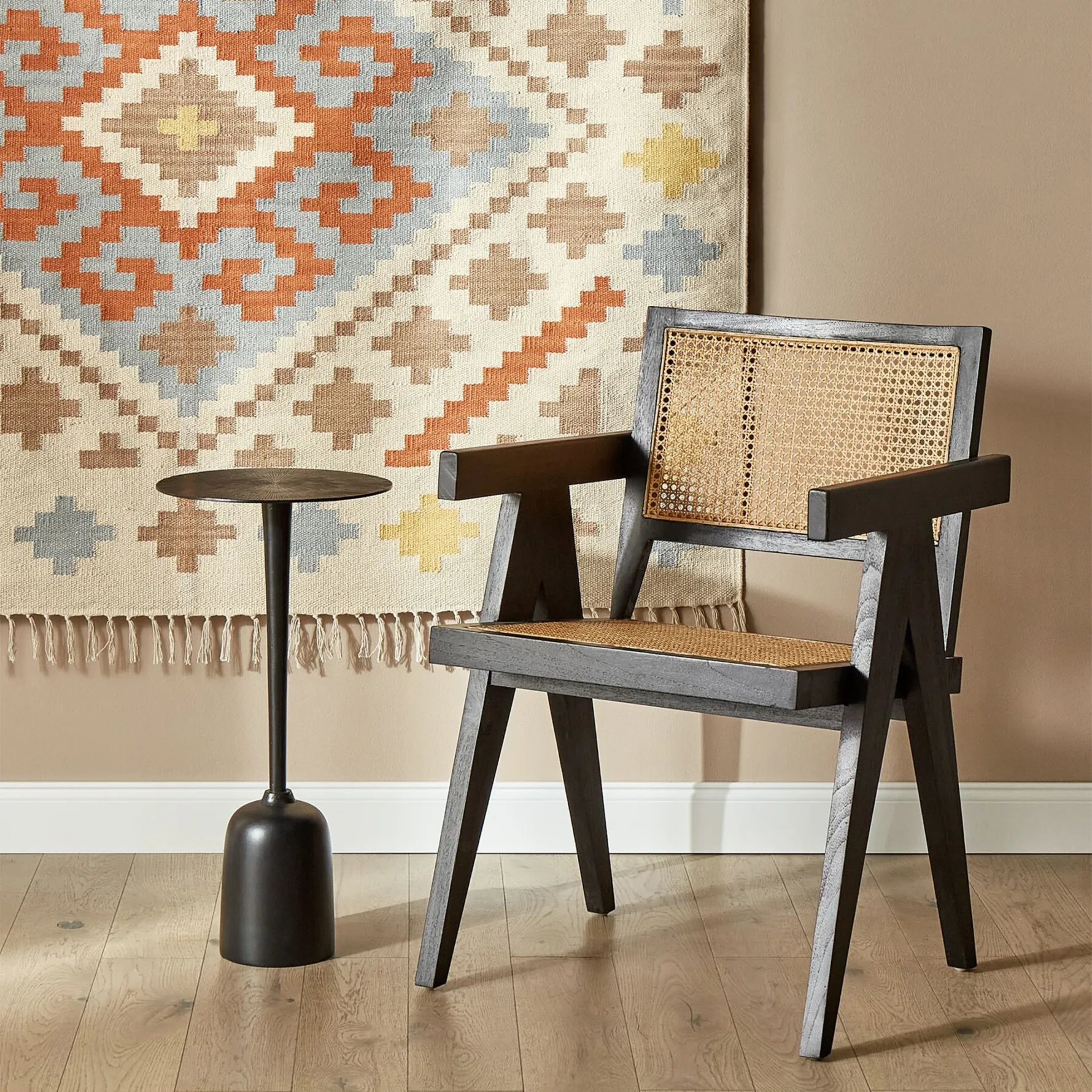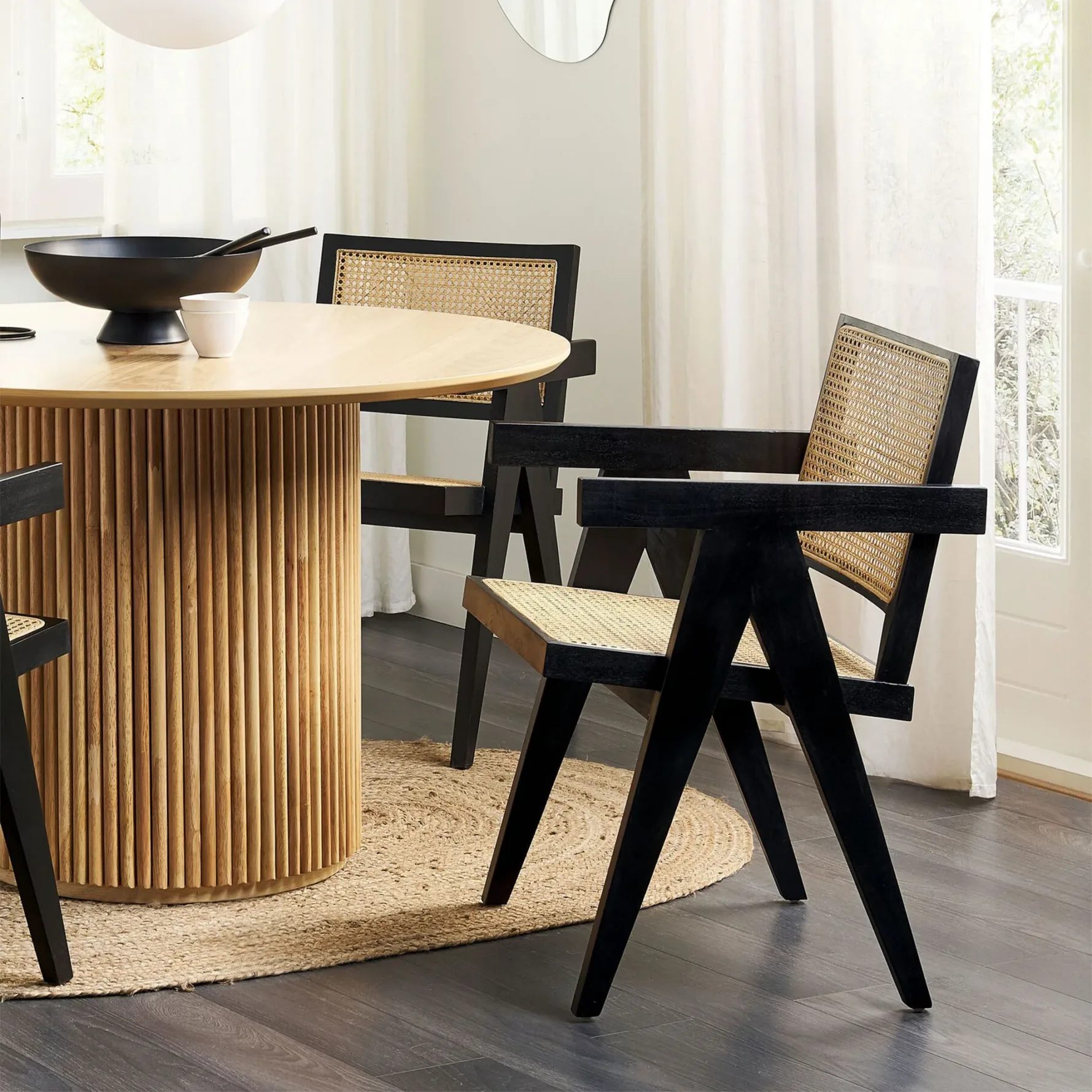 - Handwoven cane seat and back for airy comfort and artisanal texture.