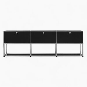 - Glossy black painted steel frame for bold structure and sleek finish.