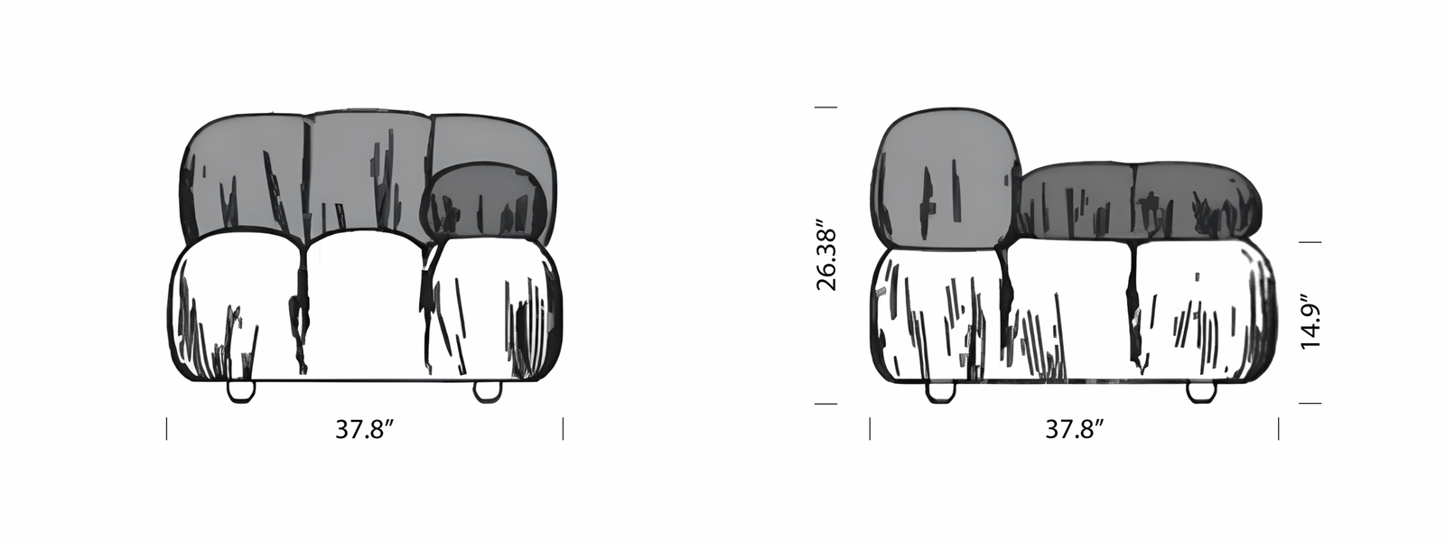 Sofa Measurement: | 38 W x 38 D x 26 H inches / 96 W x 96 D x 67 H cm |