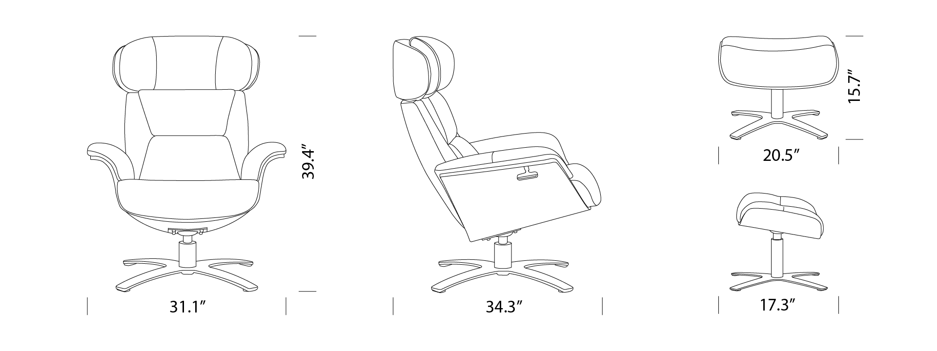 | Ottoman: 20.5 W x 17.3 D x 15.7 H inches / 52.1 W x 43.9 D x 39.9 H cm | |